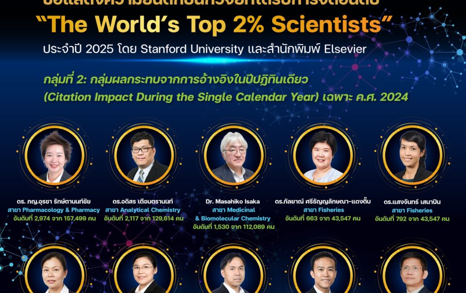 - ขอแสดงความยินดีกับนักวิจัยไทยไบโอเทค สวทช. ที่ได้รับการจัดอันดับเป็นหนึ่งใน “The World’s Top 2% Scientists ประจำปี 2025” โดย Stanford University และสำนักพิมพ์ Elsevier10/03/2025