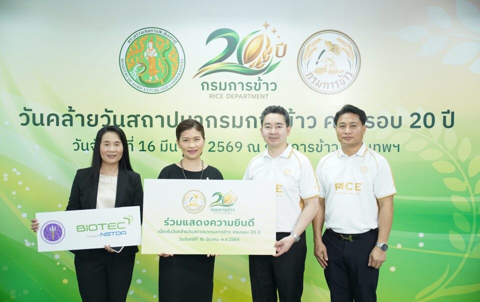 - ‘ไบโอเทค สวทช.’ ร่วมยินดี 20 ปี ‘กรมการข้าว’ เดินหน้าสนับสนุนงานวิจัยนวัตกรรมข้าวไทยเพื่อเกษตรกรอย่างยั่งยืน03/17/2026
