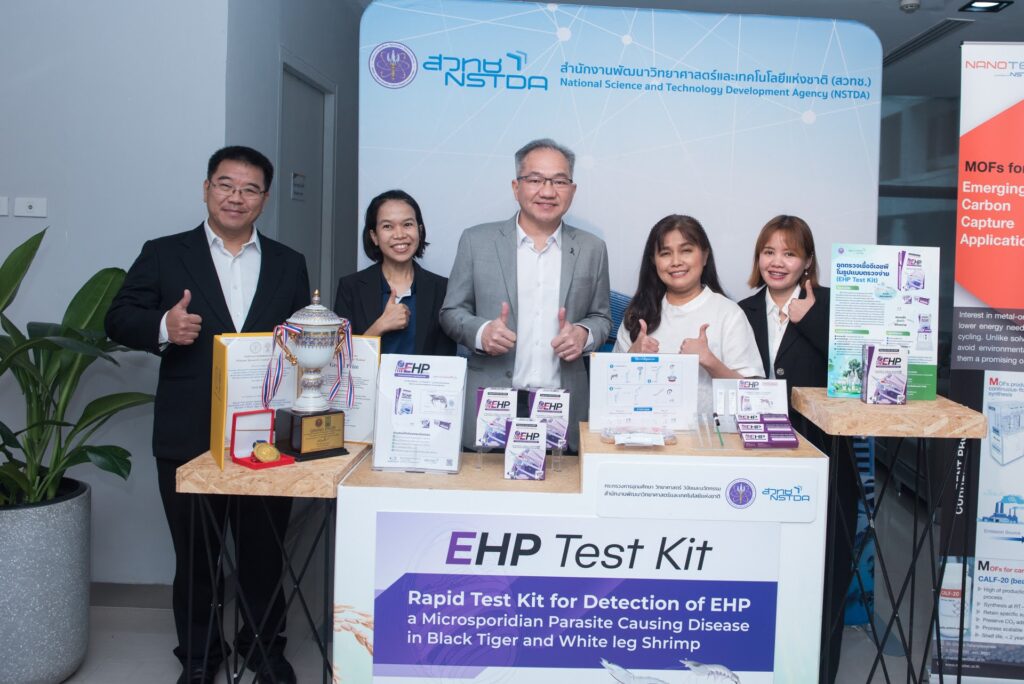 9 มีนาคม 2569 ณ ห้องแถลงข่าว กระทรวง อว. – สวทช. ได้จัดงานแถลงข่าวประกาศความพร้อมการจัดงานประชุมวิชาการประจำปี NAC2026 โดยหนึ่งในไฮไลต์เด่นที่นำมาโชว์ในงานคือผลงานจากไบโอเทค “การตรวจเชื้ออีเอชพีอย่างง่าย (EHP)” สำหรับอุตสาหกรรมการเพาะเลี้ยงกุ้ง ช่วยเกษตรกรผู้เลี้ยงกุ้งเปลี่ยนการตรวจโรคในห้องแล็บที่ล่าช้า มาเป็นการตรวจภาคสนามที่รู้ผลไวภายใน 25 นาที คัดกรองกุ้งแคระแกร็นได้ตั้งแต่ต้นทาง ลดความเสียหายทางเศรษฐกิจมหาศาลจากโรคระบาดได้อย่างทันท่วงที