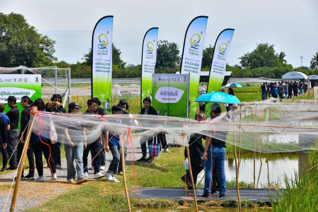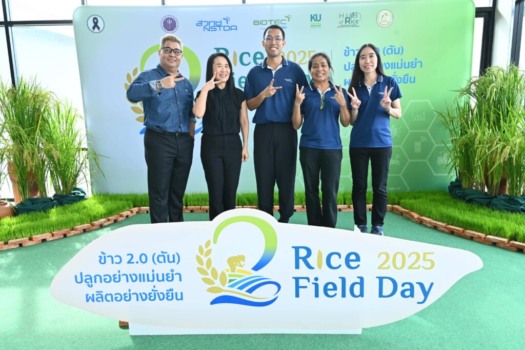 “NSTDA-KU Rice Field Day 2025” เป็นงานจัดแสดงพันธุ์ข้าว สวทช.-มก. ครั้งที่ 2 ขึ้น เพื่อแสดงศักยภาพด้านเทคโนโลยีและนวัตกรรมการปรับปรุงพันธุ์ข้าว ที่เกิดจากความร่วมมืออันยาวนานกว่า 20 ปี โดยธีมงานปีนี้มีความพิเศษตรงที่จะมุ่งเน้นการสร้างสรรค์ “พันธุ์ข้าวที่ให้ผลผลิตสูงถึง 1.5 – 2 ตันต่อไร่” อายุการเก็บเกี่ยวสั้น และมีคุณสมบัติพิเศษต้านทานโรค แมลง รวมถึงปรับตัวได้ดีในสภาวะแวดล้อมวิกฤติ