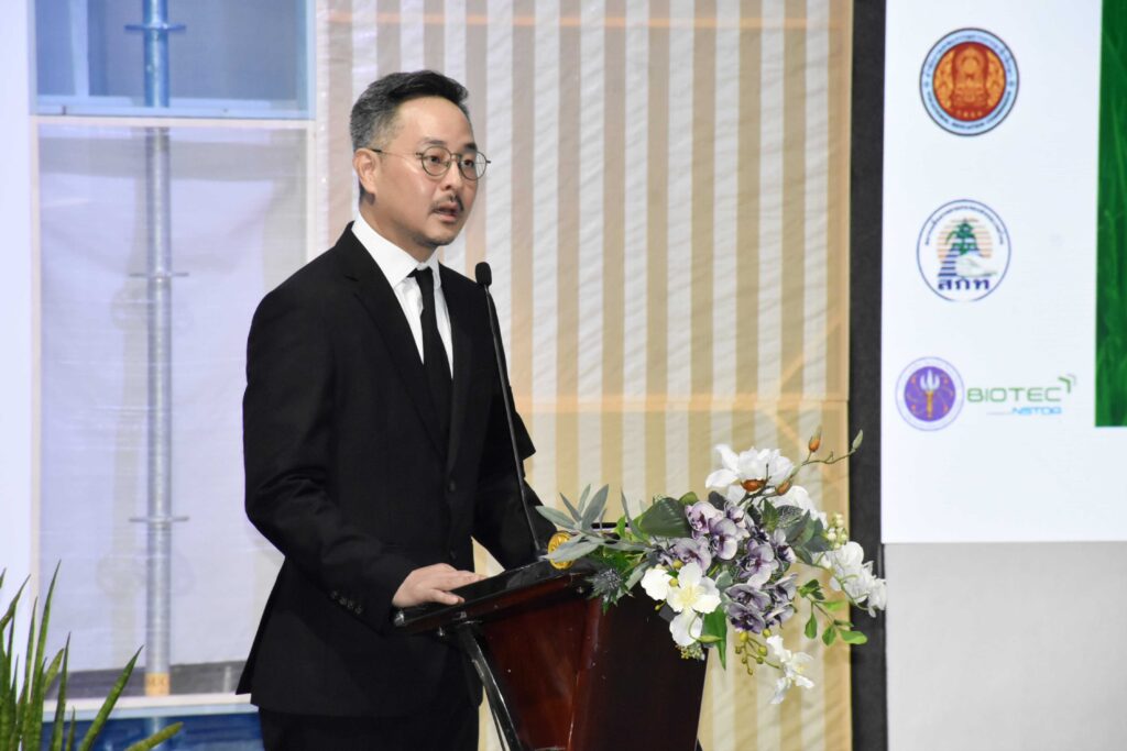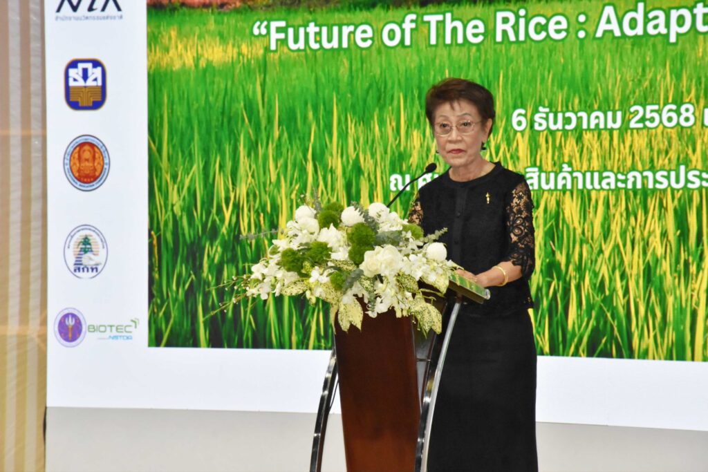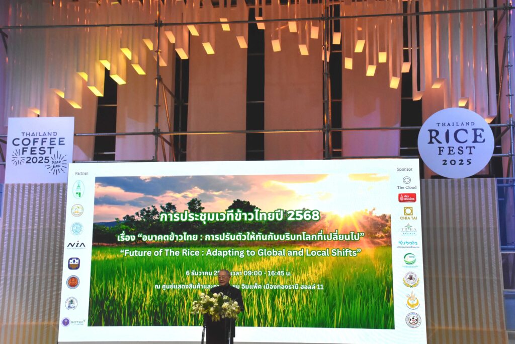 (6 ธ.ค. 68) ณ อิมแพ็ค เมืองทองธานี ฮอลล์ 11 – มูลนิธิข้าวไทย ในพระบรมราชูปถัมภ์ และภาคีเครือข่าย ซึ่งรวมถึงศูนย์พันธุวิศวกรรมและเทคโนโลยีชีวภาพแห่งชาติ (ไบโอเทค) สำนักงานพัฒนาวิทยาศาสตร์และเทคโนโลยีแห่งชาติ (สวทช.) ร่วมกันจัดงานการประชุม “เวทีข้าวไทยปี 2568” ภายใต้หัวข้อ “อนาคตข้าวไทย : การปรับตัวให้ทันกับบริบทโลกที่เปลี่ยนไป” (Future of Thai Rice : Adapting to Global and Local Shifts) เพื่อเป็นเวทีระดมความคิดและกำหนดทิศทางเพื่อความมั่นคงยั่งยืนของอุตสาหกรรมข้าวไทย พิธีเปิดได้รับเกียรติจาก ดร.สุเมธ ตันติเวชกุล ประธานกรรมการมูลนิธิข้าวไทยฯ กล่าวเปิดงานและปาฐกถาพิเศษในหัวข้อ “ชาวนายุคใหม่ในวิถีความพอเพียง” โดยมี ดร.กอบกุล เหล่าเท้ง รองผู้อำนวยการไบโอเทค และผู้บริหารจากหน่วยงานร่วมจัดร่วมในพิธีอย่างพร้อมเพรียง