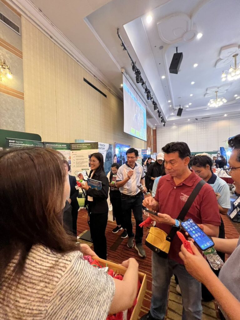 ในโอกาสนี้ ดร.กัลยาณ์ ศรีธัญญาลักษณา-แดงติ๊บ ผู้อำนวยการกลุ่มวิจัยเทคโนโลยีชีวภาพสัตว์น้ำแบบบูรณาการ ได้รับเกียรติร่วมเป็นวิทยากรเสวนาในหัวข้อ “อัปเดตเทคนิคหยุดปัญหาโรคกุ้ง” ถ่ายทอดองค์ความรู้และแนวทางจัดการโรคอย่างมีประสิทธิภาพให้กับเกษตรกรและผู้ประกอบการ