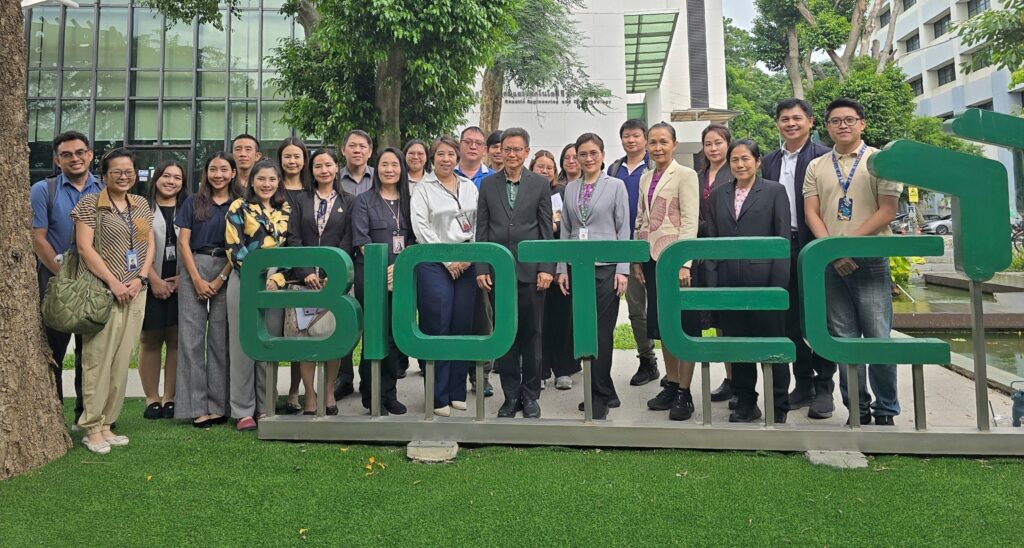 สำนักงานพัฒนาวิทยาศาสตร์และเทคโนโลยีแห่งชาติ (สวทช.) โดยศูนย์พันธุวิศวกรรมและเทคโนโลยีชีวภาพแห่งชาติ (ไบโอเทค) นำโดย ผู้ช่วยศาสตราจารย์ ดร.เชาวรีย์ อรรถลังรอง ผู้อำนวยการไบโอเทค พร้อมด้วยคณะผู้บริหาร และนักวิจัยจากธนาคารทรัพยากรชีวภาพแห่งชาติ (NBT) ศูนย์โอมิกส์แห่งชาติ (NOC) ศูนย์ชีววัสดุประเทศไทย (TBRC) กลุ่มวิจัยเทคโนโลยีชีวภาพพืชและการจัดการแบบบูรณาการ ร่วมให้การต้อนรับ นายสุวรรณ ตั้งมิตรเจริญ ผู้อำนวยการสำนักวิจัยและพัฒนาป่าไม้ นางสาวนฤมล นุชเปลี่ยน ผู้อำนวยการส่วนวิจัยความหลากหลายทางชีวภาพด้านป่าไม้ นางสาวปิยะวดี บัวจงกล ผู้อำนวยการส่วนวิจัยและพัฒนาการใช้ประโยชน์ป่าไม้ นายดุริยะ สถาพร ผู้อำนวยการส่วนวนวัฒนวิจัย กรมป่าไม้ และคณะเจ้าหน้าที่ ในโอกาสร่วมกันหารือแนวทางการดำเนินงานภายใต้ “บันทึกข้อตกลงความร่วมมือการวิจัยและพัฒนาวิชาการด้านพันธุกรรมและความหลากหลายทางชีวภาพป่าไม้” เมื่อวันที่ 3 กันยายน 2568 ที่ผ่านมา ณ อาคารไบโอเทค อุทยานวิทยาศาสตร์ประเทศไทย จ.ปทุมธานี