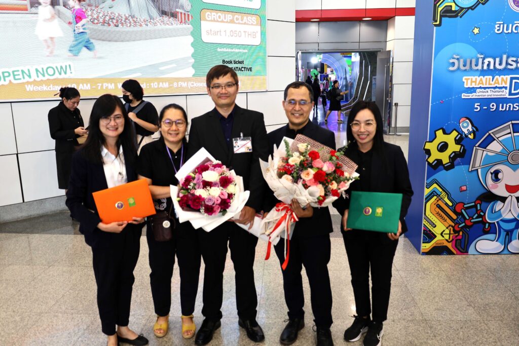 - ผลงานเรื่อง “นวัตกรรมการผลิตสารชีวภาพ AQ35 เพื่อใช้ควบคุมการเพิ่มจำนวน เชื้อไมโครสปอริเดียน EHP ในลูกกุ้ง” โดยดร.ศุภรัตน์ แตงชัยภูมิ และคณะ (รางวัลระดับดี สาขาเกษตรศาสตร์และชีววิทยา)
