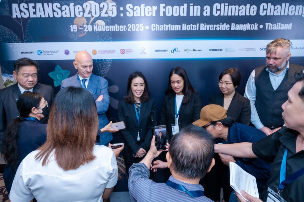 19 – 20 November 2025, Chatrium Hotel Riverside Bangkok, Thailand, BIOTEC-NSTDA, in collaboration with Thammasat University, Queen’s University Belfast, and the International Joint Research Center on Food Security (IJC-FOODSEC), recently hosted ASEANSafe2025: Safer Food in a Climate challenging Era from 19 – 20 November 2025 at Chatrium Hotel Riverside Bangkok, Thailand. By fostering dialogue and collaboration, ASEANSafe works to support regional actions that strengthen food and agriculture across ASEAN. Its goal is to help the region build systems that are safe, strong, and sustainable for the future.
