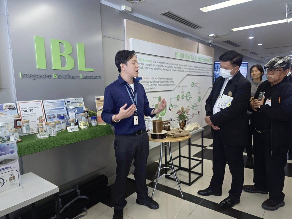 ขณะเดียวกัน คณะนักวิจัยไบโอเทค นำโดย ดร.ธิดารัตน์ นิ่มเชื้อ ผู้อำนวยการกลุ่มวิจัยเทคโนโลยีไบโอรีไฟเนอรีและชีวภัณฑ์ ได้นำเสนอแนวทางการดำเนินงานวิจัยด้านการเพิ่มมูลค่าอุตสาหกรรมเกษตรและชีวภาพของไทย ภายใต้แนวคิด “InnoAgro” ซึ่งมุ่งนำวิทยาศาสตร์ เทคโนโลยี และนวัตกรรม มายกระดับห่วงโซ่คุณค่าทางการเกษตรและชีวภาพอย่างครบวงจร ตั้งแต่การพัฒนาวัตถุดิบ การแปรรูป การเพิ่มมูลค่า ไปจนถึงการต่อยอดสู่การใช้ประโยชน์เชิงอุตสาหกรรมและเชิงพาณิชย์ ควบคู่กับการใช้ทรัพยากรอย่างมีประสิทธิภาพและเป็นมิตรต่อสิ่งแวดล้อม