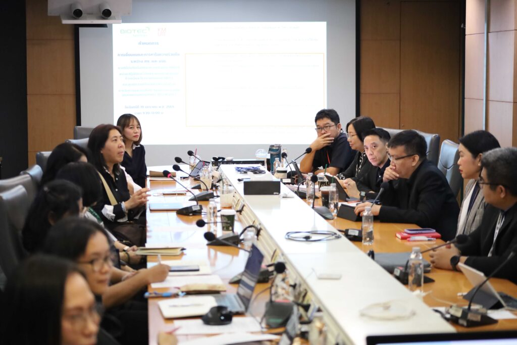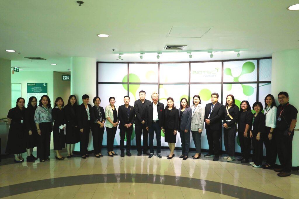 (19 ม.ค. 69) ผู้ช่วยศาสตราจารย์ ดร.เชาวรีย์ อรรถลังรอง ผู้อำนวยการศูนย์พันธุวิศวกรรมและเทคโนโลยีชีวภาพแห่งชาติ (ไบโอเทค) สำนักงานพัฒนาวิทยาศาสตร์และเทคโนโลยีแห่งชาติ (สวทช.) พร้อมด้วย ดร.กอบกุล เหล่าเท้ง รองผู้อำนวยการไบโอเทค และคณะนักวิจัย ให้การต้อนรับ รองศาสตราจารย์ ดร.สุวิทย์ แซ่เตีย อธิการบดีมหาวิทยาลัยเทคโนโลยีพระจอมเกล้าธนบุรี (มจธ.) พร้อมคณะผู้บริหาร มจธ. ในโอกาสเข้าเยี่ยมชมและหารือความร่วมมือ ณ อาคารไบโอเทค อุทยานวิทยาศาสตร์ประเทศไทย จ.ปทุมธานี