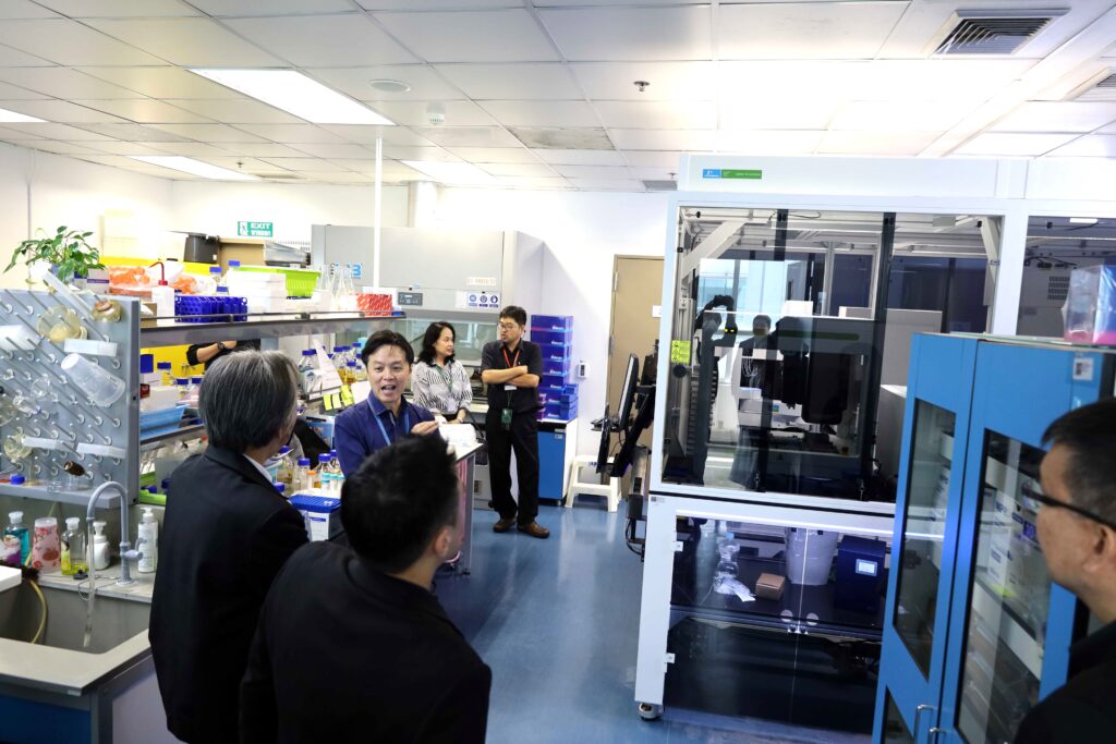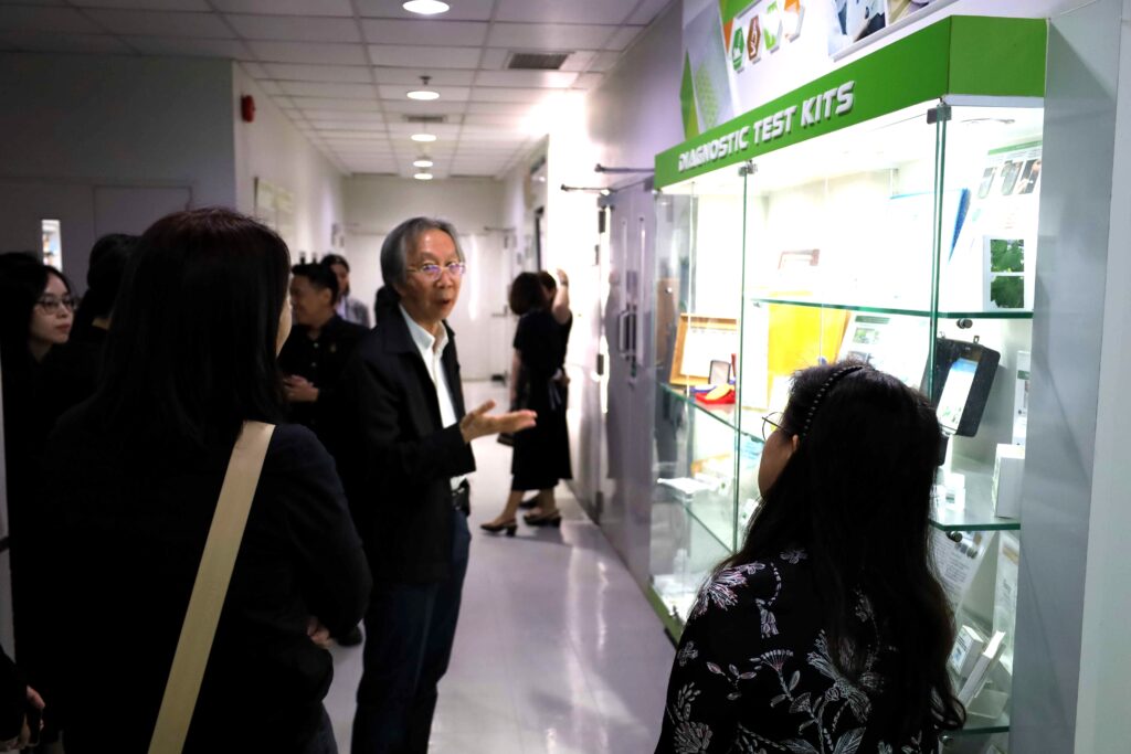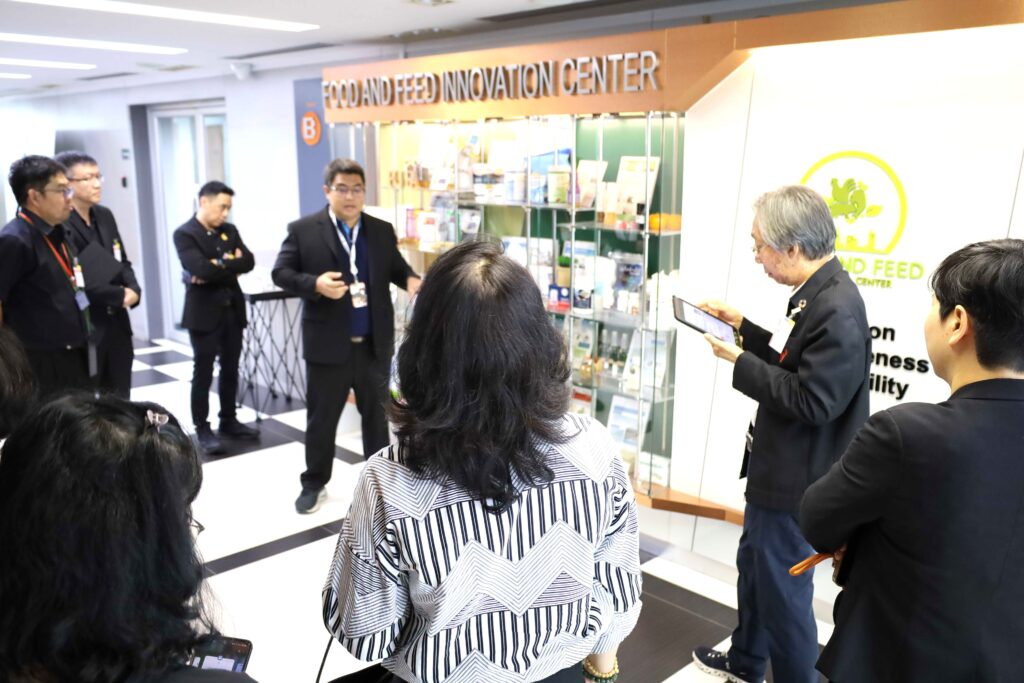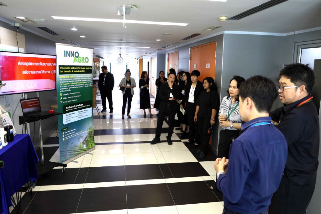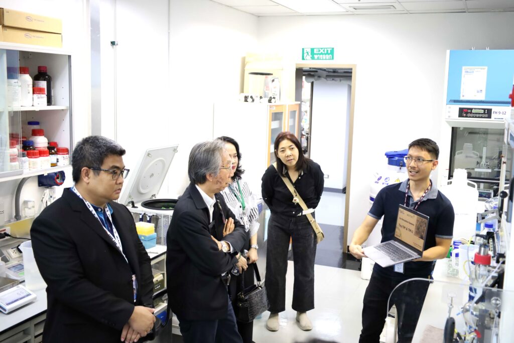 นอกจากนี้ คณะผู้บริหาร มจธ. ยังได้เข้าเยี่ยมชมโครงสร้างพื้นฐานด้านการวิจัยของไบโอเทค เริ่มจากการเข้าชมโครงสร้างพื้นฐานการผลิตโมโนโคลนอลแอนติบอดีและการประยุกต์ใช้ ณ อาคารไบโอเทค จากนั้นได้เดินทางไปยังอาคารนวัตกรรม 2 (INC2) เพื่อเยี่ยมชมศูนย์ชีววัสดุประเทศไทย (TBRC) ต่อด้วยโครงสร้างพื้นฐานทางด้านไบโอรีไฟเนอรีและการเพิ่มมูลค่าชีวมวลแบบบูรณาการ รวมถึงโครงสร้างพื้นฐานทางด้านอาหารและส่วนผสมฟังก์ชัน โดยมีหัวหน้าทีมวิจัยและผู้เชี่ยวชาญในแต่ละด้านร่วมบรรยายสรุปข้อมูล ซึ่งการเยี่ยมชมในครั้งนี้ถือเป็นก้าวสำคัญในการขยายผลงานวิจัยและนวัตกรรมเพื่อสร้างประโยชน์ให้แก่ภาคอุตสาหกรรมและสังคมต่อไป