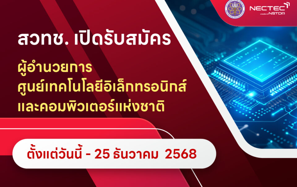 สวทช. ประกาศรับสมัครบุคคล เพื่อคัดเลือกเป็นผู้อำนวยการ เนคเทค (NECTEC) ภายใน 25 ธ.ค.นี้