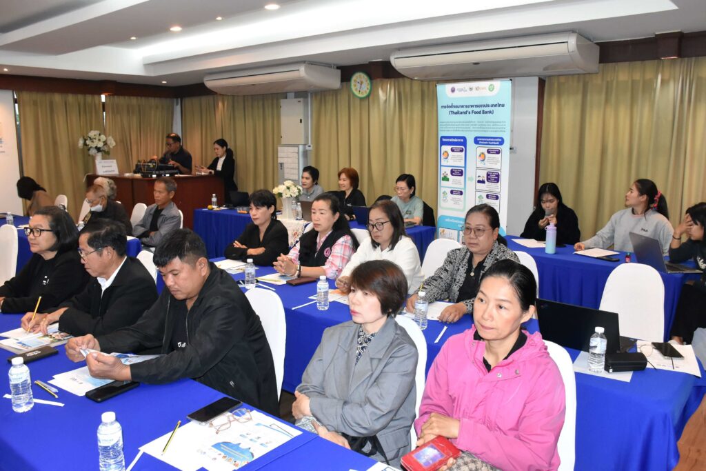 ในพื้นที่จังหวัดลำปาง คณะทำงานฯ ได้รับความร่วมมืออย่างดียิ่งจากภาคธุรกิจเข้าร่วมประชุมหารือ ณ โรงแรมเวียงลคอร เพื่อวางแนวทางดึงภาคเอกชนและเครือข่ายผู้ประกอบการในท้องถิ่นเข้ามาเป็นฟันเฟืองสำคัญในระบบธนาคารอาหาร โดยมีนายพีระรักษ์ พิชญกุล ประธานหอการค้าจังหวัดลำปาง กล่าวต้อนรับผู้เข้าร่วมการประชุม ประกอบด้วย องค์กรปกครองส่วนท้องถิ่น หน่วยงานรัฐ ผู้ประกอบการในพื้นที่ และจิตอาสาจำนวน 27 คน โดยได้แลกเปลี่ยนแนวทางการดำเนินงานร่วมกันของภาคีเครือข่ายในพื้นที่ เพื่อพัฒนาระบบการจัดการอาหารส่วนเกินให้เกิดประโยชน์สูงสุด ตั้งแต่การคัดแยก การรวบรวม การกระจาย/ส่งต่อ ไปจนถึงการนำกลับมาใช้ประโยชน์อย่างเหมาะสม ตลอดจนการสร้างความร่วมมือระหว่างหน่วยงานภาครัฐ ภาคเอกชน และภาคประชาสังคม เพื่อร่วมกันขับเคลื่อนจังหวัดลำปางสู่การลดการสูญเสียอาหารอย่างเป็นรูปธรรม และเกิดความยั่งยืนในระยะยาว พร้อมกันนี้ยังได้ลงพื้นที่ร่วมกับอาสาสมัครรักษ์อาหารจังหวัดลำปาง เพื่อเยี่ยมชมกระบวนการรับและแจกจ่ายอาหารให้แก่กลุ่มเปราะบางในพื้นที่ชุมชนบ้านสามขา และบ้านแม่ทะ เพื่อประเมินประสิทธิภาพการทำงานของอาสาสมัครในระดับชุมชน
