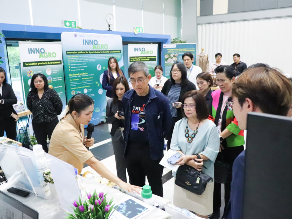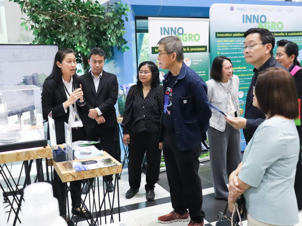 พร้อมกันนี้ ได้เยี่ยมชมนิทรรศการ ผลงานเด่นและผลงานที่น่าสนใจของ Inno–Agro ไบโอเทค ณ โถงนิทรรศการ ชั้น 1-C Tower C อาคารกลุ่มนวัตกรรม 2 (INC 2) นำเสนอ 3 กลุ่มผลงานเด่น
