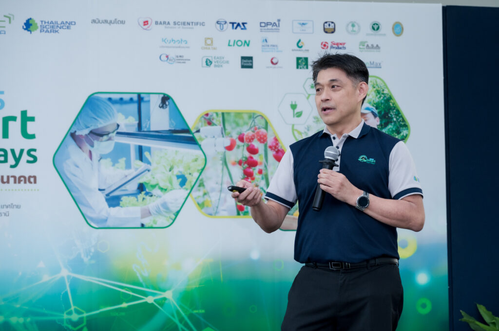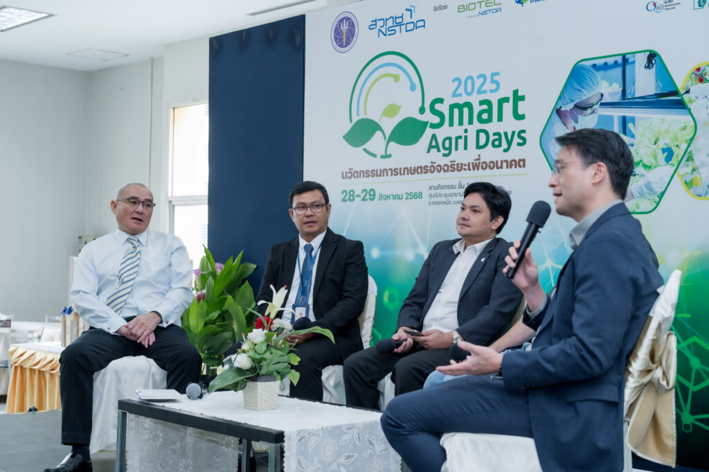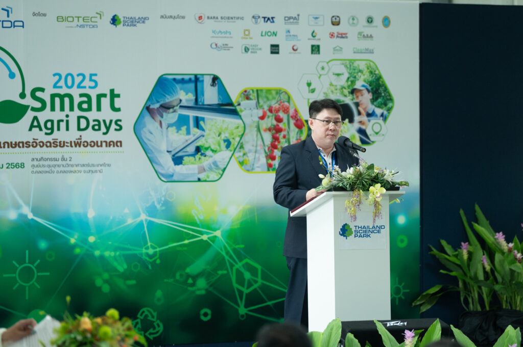 ผู้ช่วยศาสตราจารย์ ดร.เชาวรีย์ อรรถลังรอง ผู้อำนวยการศูนย์พันธุวิศวกรรมและเทคโนโลยีชีวภาพแห่งชาติ (ไบโอเทค) สวทช. กล่าวว่า มีความยินดีอย่างยิ่ง ที่งาน Smart Agri Days 2025: นวัตกรรมการเกษตรอัจฉริยะเพื่ออนาคต” จัดขึ้นมาเพื่อเป็นเวทีสำคัญที่จะแสดงให้เห็นถึงศักยภาพ ของผู้ประกอบการไทย ในการขับเคลื่อนภาคเกษตรกรรมให้ก้าวทันยุคสมัย โดยเฉพาะในอุตสาหกรรมสมุนไพรไทยและพืชเศรษฐกิจ ที่กำลังเป็นที่ต้องการของตลาดโลกอย่างมาก โดยเฉพาะอย่างยิ่งในยุคที่เทคโนโลยีคือหัวใจสำคัญ การเกษตรอัจฉริยะ (Smart Agriculture) จึงไม่ใช่แค่ทางเลือก แต่คือ ยุทธศาสตร์ที่จะสร้างความได้เปรียบในการแข่งขันได้อย่างยั่งยืน การนำเทคโนโลยีล้ำสมัยอย่างโรงงานผลิตพืช (Plant Factory) AI และหุ่นยนต์การเกษตรมาใช้ จะช่วยเพิ่มประสิทธิภาพ ลดความเสี่ยง รวมทั้งที่สำคัญคือ ช่วยเพิ่มมูลค่าให้กับผลผลิตจากฝีมือคนไทย