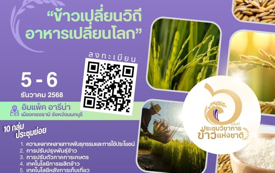 - ไบโอเทค ขอเชิญลงทะเบียนเข้าร่วมงานและส่งผลงานวิชาการ “การประชุมวิชาการข้าวแห่งชาติ ครั้งที่ 6 : ข้าวเปลี่ยนวิถี อาหารเปลี่ยนโลก” 5 - 6 ธันวาคม 256811/25/2025