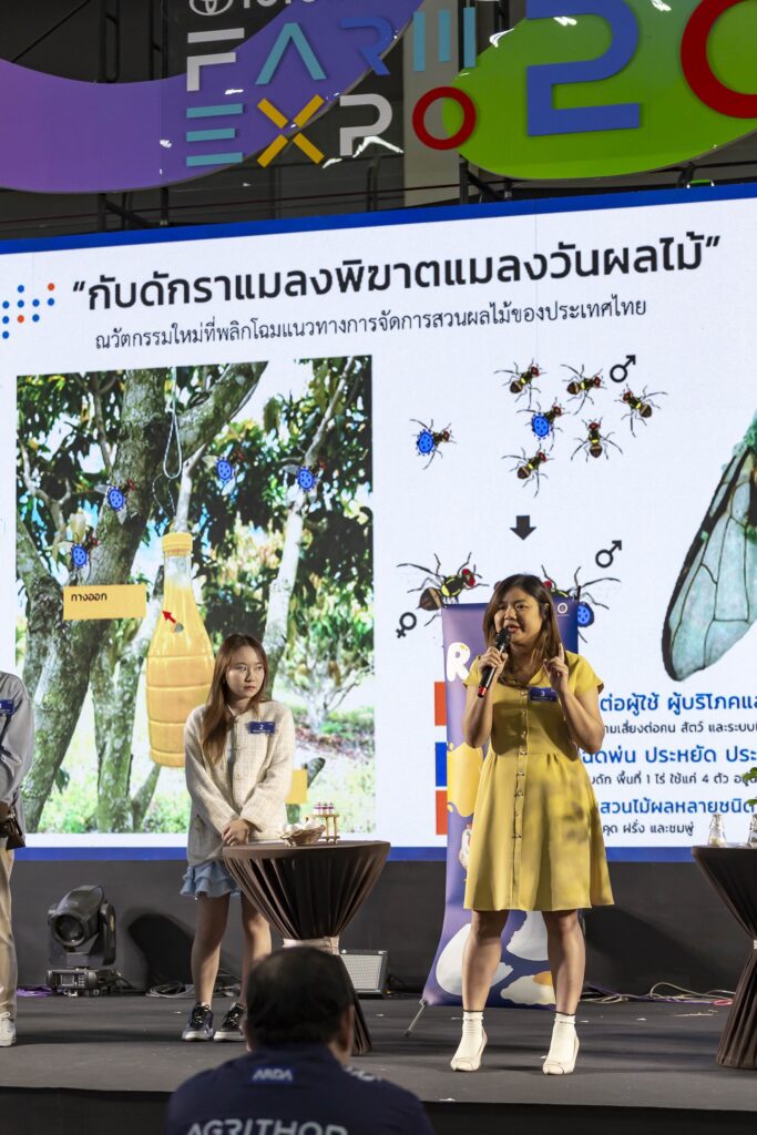 ซึ่งมุ่งแก้ปัญหา “แมลงวันผลไม้” ศัตรูพืชสำคัญที่สร้างความเสียหายและเป็นอุปสรรคในการส่งออกผลไม้ไทย โดยนวัตกรรมนี้ใช้ “จุลินทรีย์ราแมลง” แทนสารเคมี สามารถกำจัดได้ทั้งเพศผู้และเพศเมีย ผ่านการแพร่เชื้อจากพฤติกรรมการผสมพันธุ์ของแมลง ทำให้ลดการใช้สารเคมี ลดต้นทุนแรงงาน และเป็นมิตรต่อสิ่งแวดล้อม