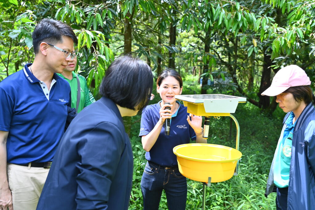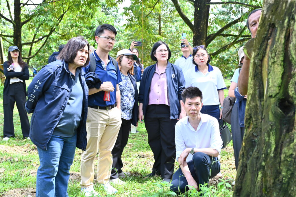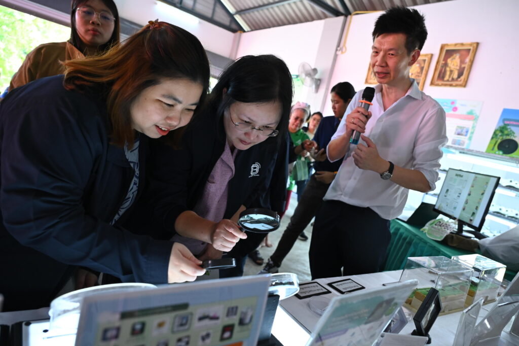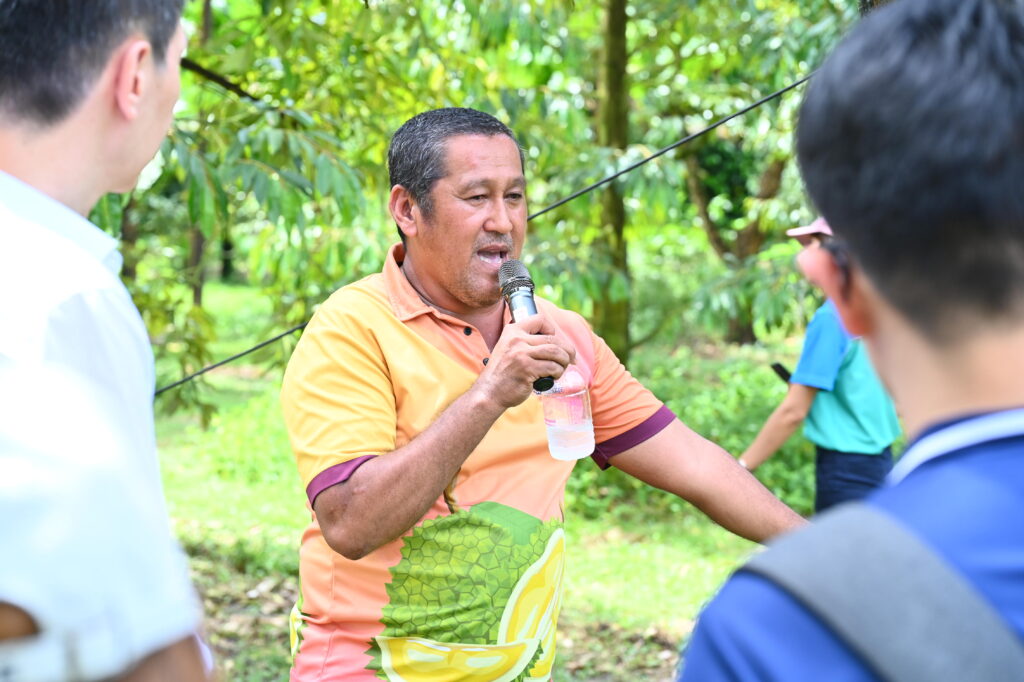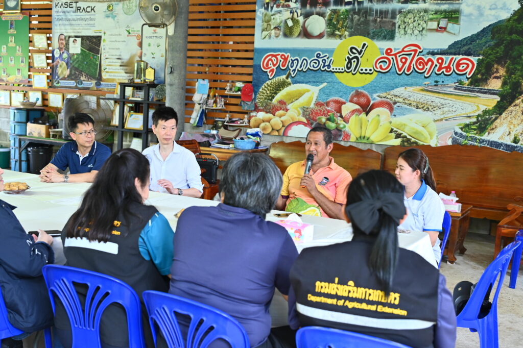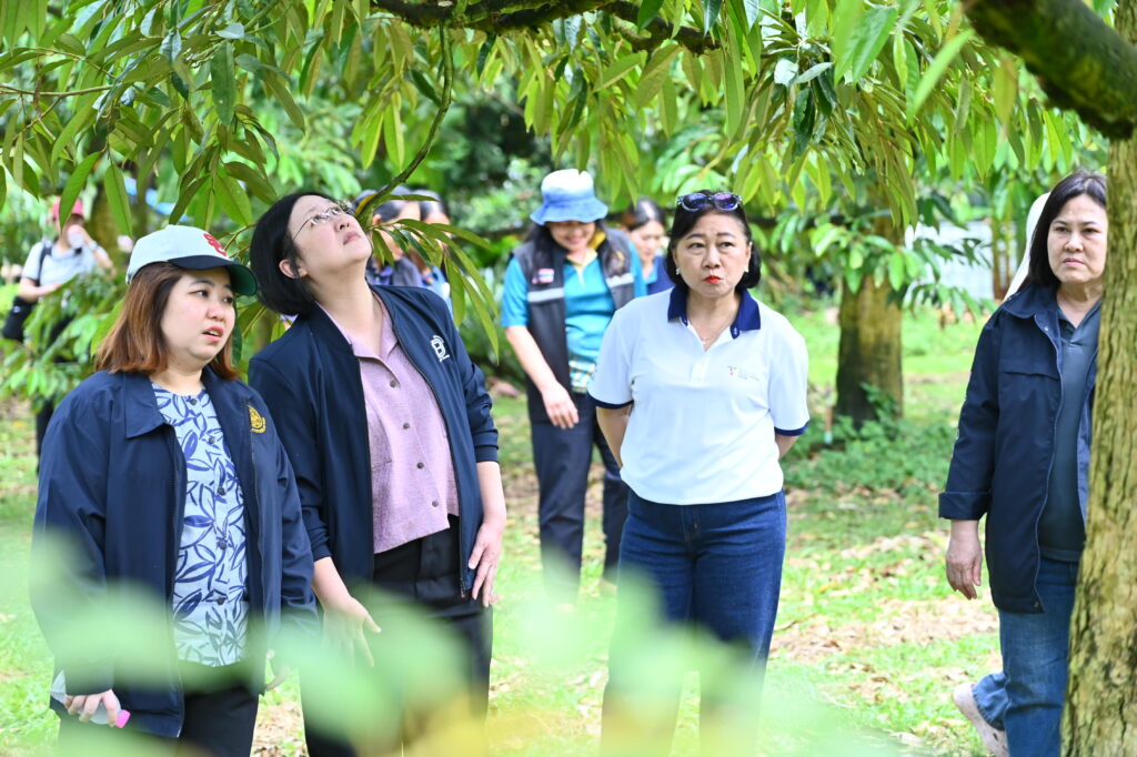 จากนั้น คณะฯ ได้เข้าเยี่ยมชมสวนผลไม้พรรณมณี ของคุณมณี ภาระเปลื้อง ที่ ต.วังโตนด อ.นายายอาม จ.จันทบุรี เพื่อชมแปลงเรียนรู้การใช้ไตรโคเดอร์มา TBRC 4734 จัดการโรครากเน่าโคนเน่าในทุเรียน ซึ่งร่วมถ่ายทอดเทคโนโลยี โดย สถาบันการจัดการเทคโนโลยีและนวัตกรรมเกษตร (สท.) สวทช. เพื่อให้เห็นภาพของการใช้ “ชีวภัณฑ์ควบคุมโรคพืช” ที่ช่วยให้ชาวสวนสามารถต่อสู้กับโรคสำคัญอย่างโรครากเน่า-โคนเน่าได้อย่างมีประสิทธิภาพ