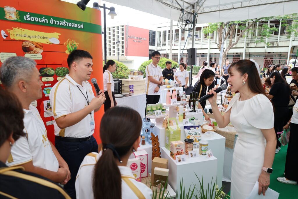 โอกาสนี้ผู้อำนวยการไบโอเทค และคุณศิริพร วัฒนศรีรังกุล นักวิจัยนโยบาย งานกลยุทธ์และนโยบายเทคโนโลยีชีวภาพ ฝ่ายแผนกลยุทธ์และพัฒนาองค์กร ได้ร่วมแสดงความยินดีในความสำเร็จของกรมการข้าวที่เป็นหน่วยงานหลักในการพัฒนาข้าวไทยมาอย่างต่อเนื่องยาวนาน พร้อมทั้งเยี่ยมชมนิทรรศการ “20 ปี กรมการข้าว” ที่จัดแสดงประวัติความเป็นมา ผลงานเด่นที่ผ่านมา และแนวทางในการขับเคลื่อนอุตสาหกรรมข้าวไทยให้เข้มแข็งในอนาคต