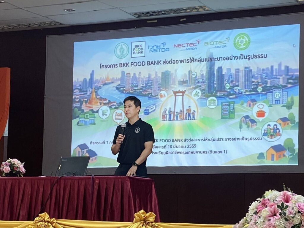 (10 มีนาคม 2569) ณ ห้องประชุม ชั้น 5 โรงเรียนฝึกอาชีพกรุงเทพมหานคร (ดินแดง 1) – กรุงเทพมหานคร โดย สำนักพัฒนาสังคม ร่วมกับสำนักงานพัฒนาวิทยาศาสตร์และเทคโนโลยีแห่งชาติ (สวทช.) และมูลนิธิ SOS จัดกิจกรรมการฝึกอบรมเชิงปฏิบัติการภายใต้โครงการ “BKK Food Bank ส่งต่ออาหารให้กลุ่มเปราะบางอย่างเป็นรูปธรรม” เพื่อบูรณาการองค์ความรู้ด้านวิทยาศาสตร์ เทคโนโลยี และนวัตกรรม เข้ากับการบริหารจัดการสวัสดิการสังคม โดยมุ่งเน้นการยกระดับขีดความสามารถของเจ้าหน้าที่ในการจัดการอาหารส่วนเกิน (Food Surplus) ให้มีประสิทธิภาพและปลอดภัยสูงสุดก่อนถึงมือประชาชนกลุ่มเปราะบางในเขตพื้นที่กรุงเทพมหานคร โดยมี นายพรพรหม ณ.ส. วิกิตเศรษฐ์ ที่ปรึกษาของผู้ว่าราชการกรุงเทพมหานคร เป็นประธานกล่าวเปิดการฝึกอบรม และมีเจ้าหน้าที่เขตของ กทม. เข้าร่วมฝึกอบรมมากกว่า 100 คน จาก 50 เขต