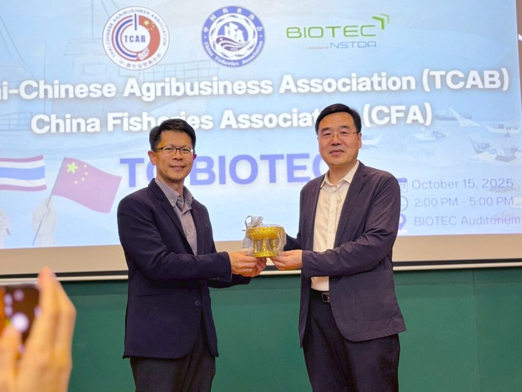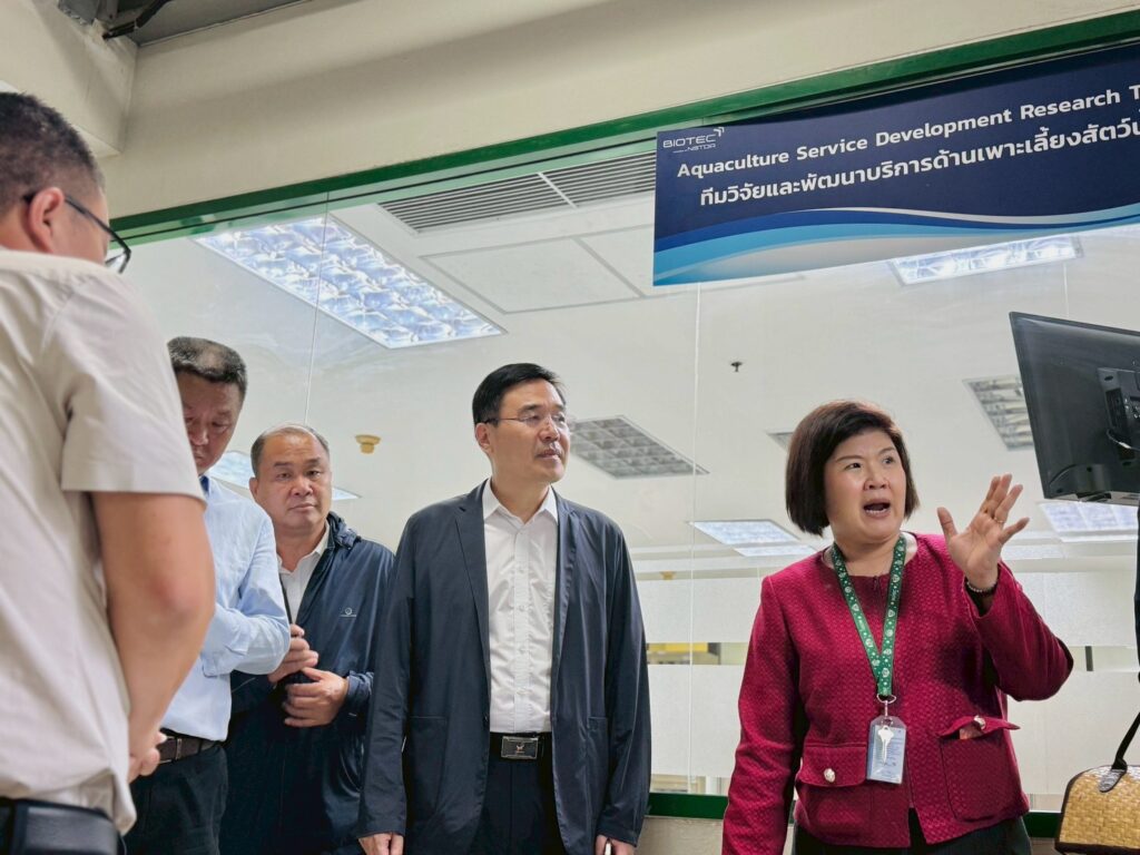 The visit aimed to strengthen collaboration between Thailand and China in aquaculture research and biotechnology innovation. The program featured presentations on BIOTEC’s research and industrial solutions for the aquaculture sector, covering areas such as genetic improvement, disease diagnostics and management and probiotic supplements for aquaculture. Discussions focused on potential cooperation in research, technology transfer, and capacity building to promote sustainable aquaculture practices in the region.
