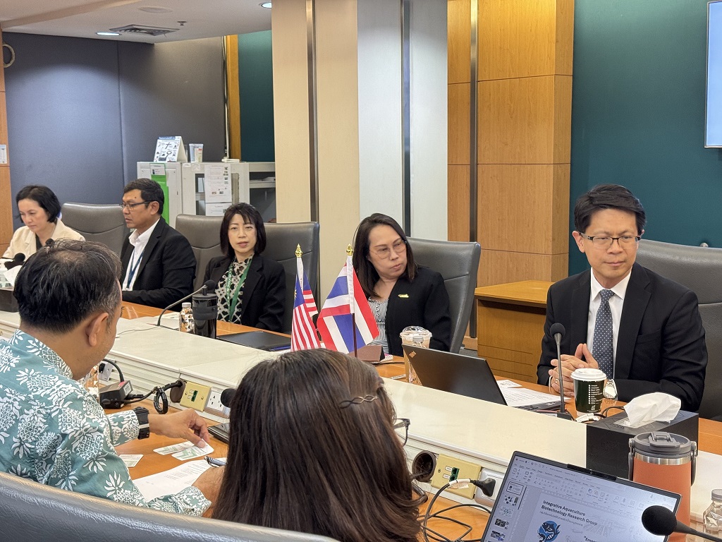 On 31 March 2025, a delegation from the Embassy of Malaysia in Thailand paid a courtesy visit to Asst. Prof. Dr. Chaowaree Adthalungrong, Executive Director of BIOTEC, and toured relevant laboratories to exchange knowledge and explore potential collaboration in agricultural research and biotechnology.