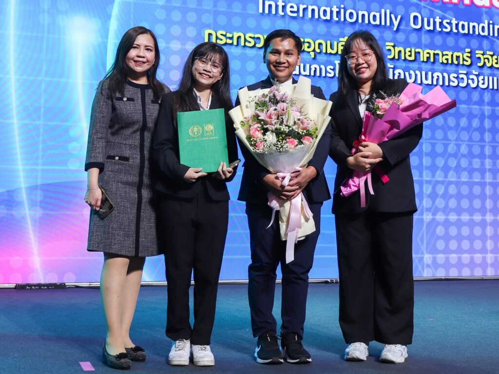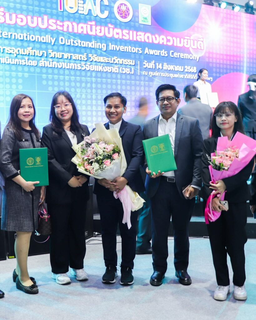 1. ดร.เบญจรัตน์ บรรเทิงสุข ในฐานะหัวหน้าคณะผู้ประดิษฐ์/ผู้วิจัยของผลงานเรื่อง “EcoXOS: กระบวนการผลิตไซโลโอลิโกแซ็กคาไรด์ที่เป็นมิตรต่อสิ่งแวดล้อม” ซึ่งได้รับรางวัลเหรียญทอง (Gold Medal) จากเวทีนานาชาติ The 36th International Invention, Innovation & Technology Exhibition (ITEX 2025) ระหว่างวันที่ 29 – 31 พฤษภาคม 2568 ณ กรุงกัวลาลัมเปอร์ สหพันธรัฐมาเลเซีย