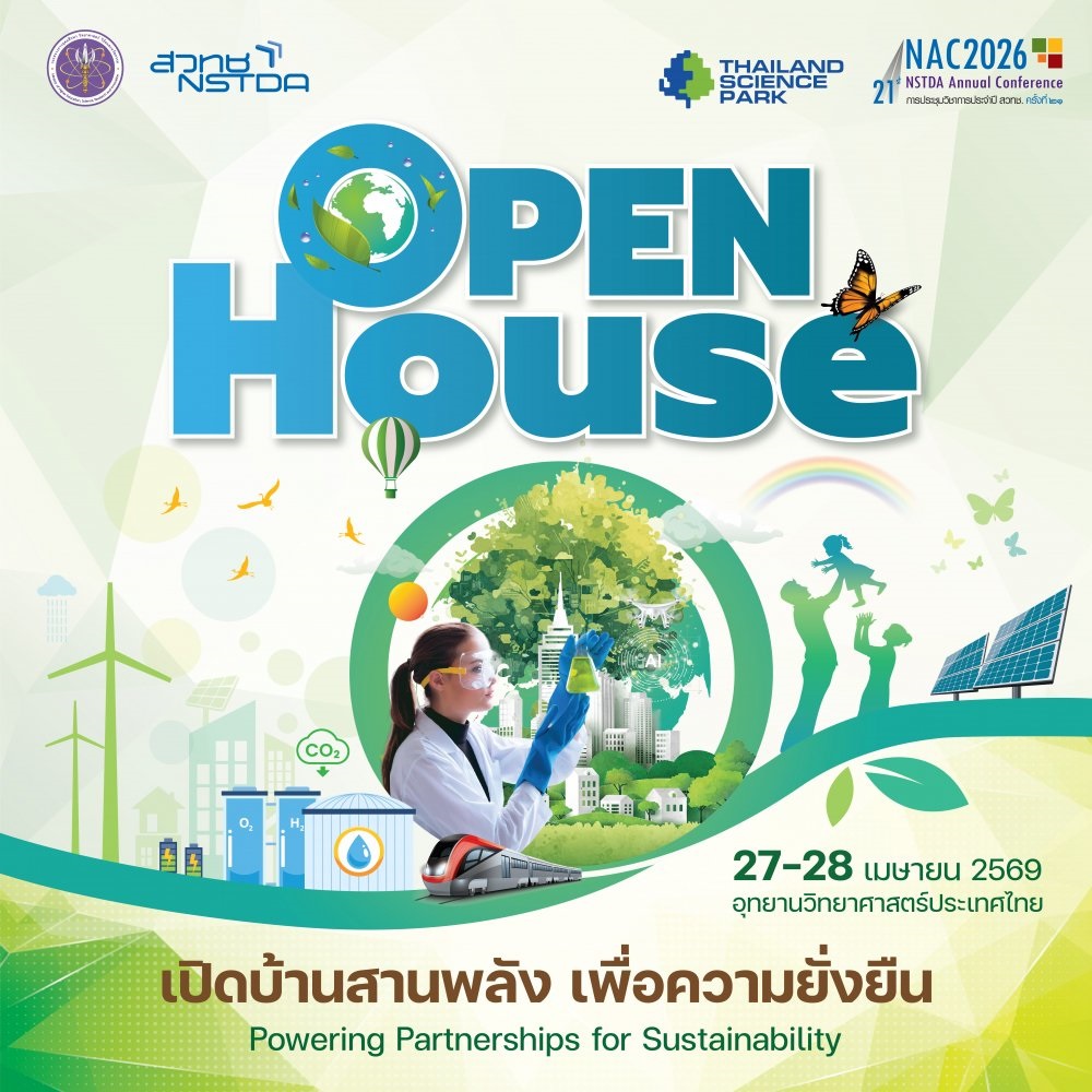 ขอเรียนเชิญท่านก้าวสู่โลกแห่งนวัตกรรมในกิจกรรม Open House เปิดบ้าน สวทช. 2569 โอกาสเดียวที่จะได้เยี่ยมชมห้องปฏิบัติการมาตรฐานระดับสากลอย่างใกล้ชิด