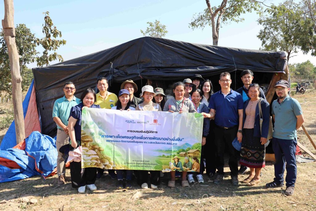 ศูนย์พันธุวิศวกรรมและเทคโนโลยีชีวภาพแห่งชาติ (ไบโอเทค) สำนักงานพัฒนาวิทยาศาสตร์และเทคโนโลยีแห่งชาติ (สวทช.) กระทรวงการอุดมศึกษา วิทยาศาสตร์ วิจัยและนวัตกรรม (อว.) จัดกิจกรรมฝึกอบรมเชิงปฏิบัติการเรื่อง “การเพาะเห็ดเศรษฐกิจเพื่อการพัฒนาอย่างยั่งยืน: ขยายผลและติดตามผลในชุมชน แขวงสะหวันนะเขต สาธารณรัฐประชาธิปไตยประชาชนลาว (สปป.ลาว)” ระหว่างวันที่ 4-5 กุมภาพันธ์ 2569 โดยมุ่งถ่ายทอดเทคโนโลยีเพาะเห็ดแก่กลุ่มใหม่ใน สปป.ลาว พร้อมติดตามผลและให้คำปรึกษาเชิงลึกแก่ผู้รับการอบรมเดิม เพื่อประยุกต์ใช้ความรู้ให้เหมาะกับพื้นที่และสร้างเศรษฐกิจฐานรากอย่างยั่งยืน ภายใต้การสนับสนุนของกองทุนความร่วมมือพิเศษล้านช้าง – แม่โขง เพื่อสร้างรายได้หมุนเวียนและขับเคลื่อนเศรษฐกิจฐานรากในภูมิภาค โดยมีเกษตรกรผู้เพาะเห็ดและหน่วยงานท้องถิ่นเข้าร่วมอย่างคึกคักมากกว่า 70 คน