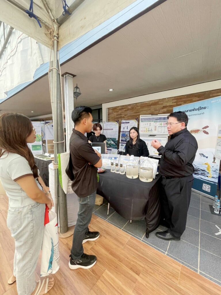 ศูนย์พันธุวิศวกรรมและเทคโนโลยีชีวภาพแห่งชาติ (ไบโอเทค) สำนักงานพัฒนาวิทยาศาสตร์และเทคโนโลยีแห่งชาติ (สวทช.) ได้ร่วมออกบูทแสดงผลงานและนวัตกรรมสำคัญเพื่อขับเคลื่อนอุตสาหกรรมสัตว์น้ำไทย ใน “งานวันสัตว์น้ำไทย 2568 (Thai Aqua Expo 2025)” ระหว่างวันที่ 2 – 4 ธันวาคม 2568 ณ โรงแรม ซันไรส์ ลากูน โฮเทล แอนด์ กอล์ฟ จ.ฉะเชิงเทรา ภายใต้แนวคิดหลัก “สัตว์น้ำไทย ปรับใหม่ เพื่อไปต่อ” ซึ่งจัดโดยสมาคมกุ้งตะวันออกไทย และพันธมิตรในภาคตะวันออก เพื่อมุ่งเน้นการยกระดับมาตรฐานการเพาะเลี้ยงสัตว์น้ำเศรษฐกิจของประเทศ โดยเฉพาะกุ้งทะเล ซึ่งรัฐบาลมีนโยบายผลักดันให้เป็นวาระแห่งชาติ